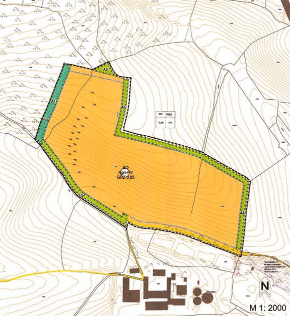 Besonderheit: Die PVA entstand auf einer ökologisch schwer belasteten Fläche durch den Rückbau von Tierzucht-Gebäuden. Bestehende Betonelemente wurden zur Gründung der Modultische verwendet.